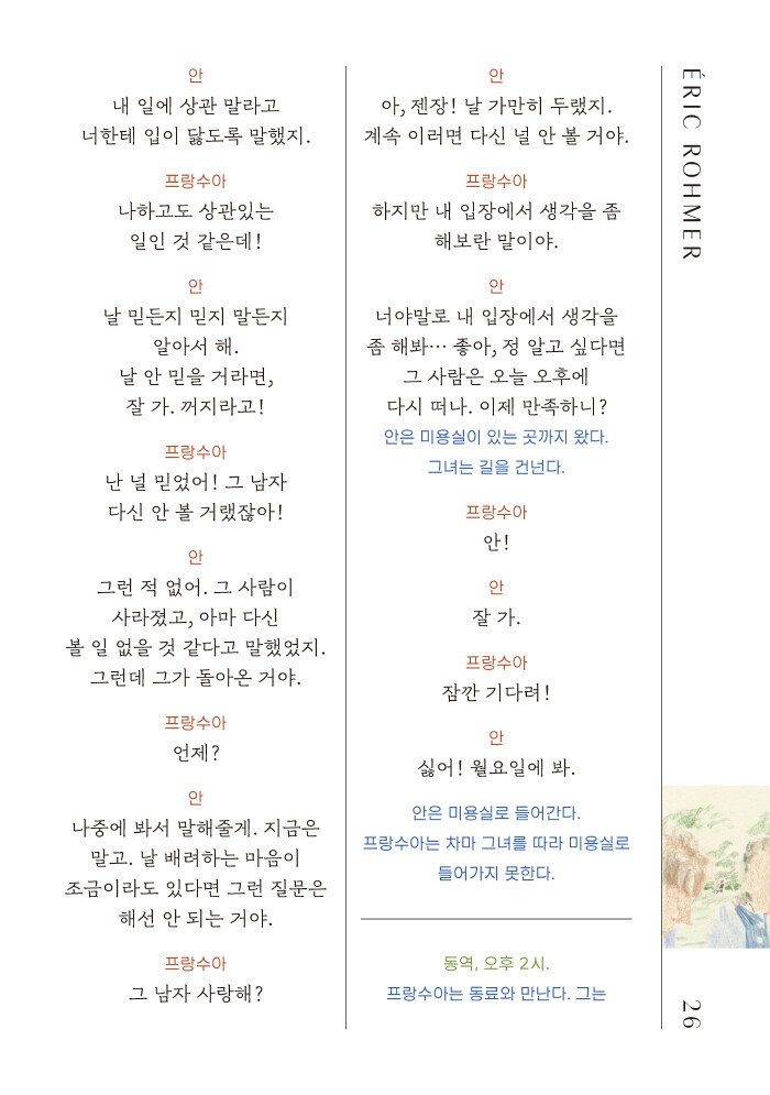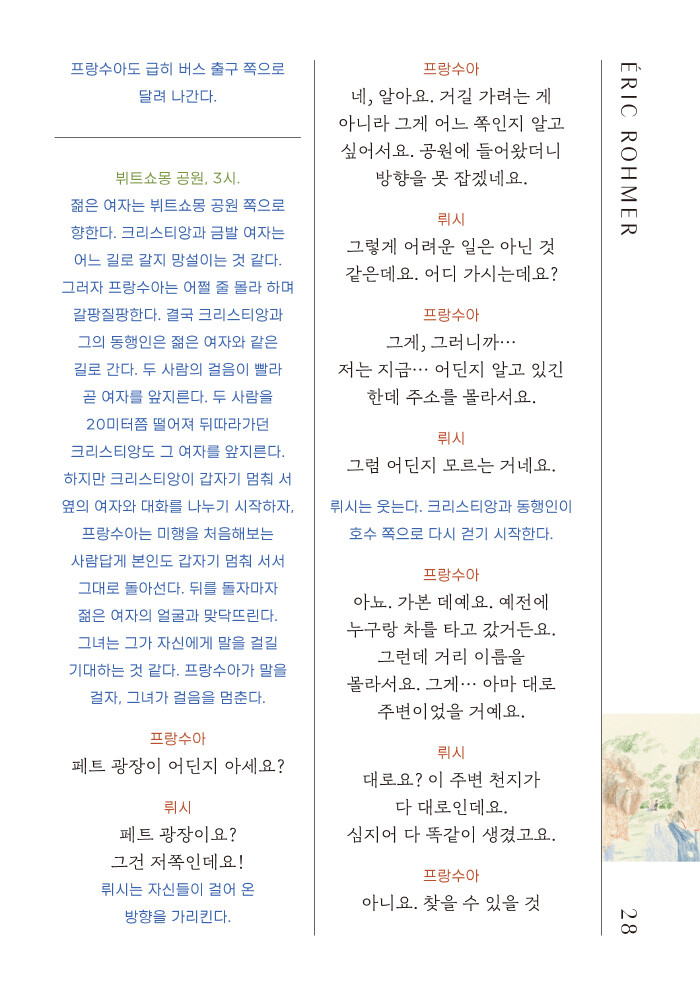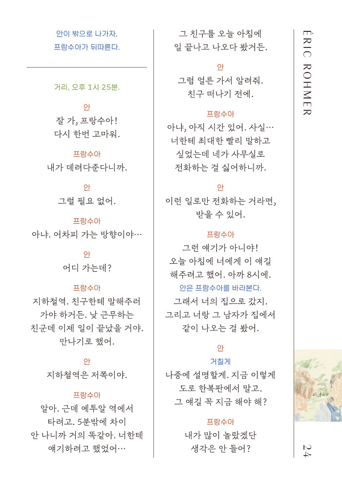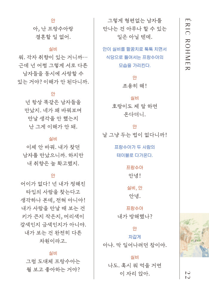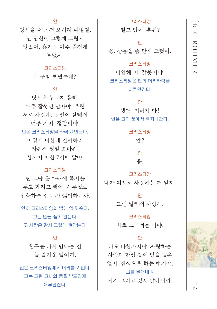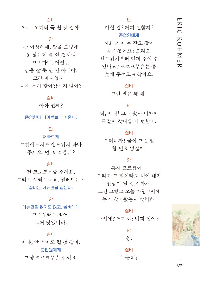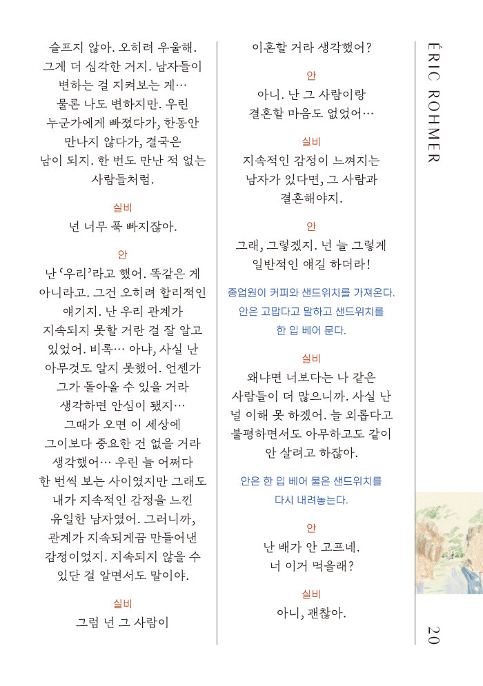올해로 탄생 100주년이자 10주기를 맞는 누벨바그의 마지막 감독 에릭 로메르의 연작 <희극과 격언>의 각본집을 두 권으로 나누어 펴냅니다.