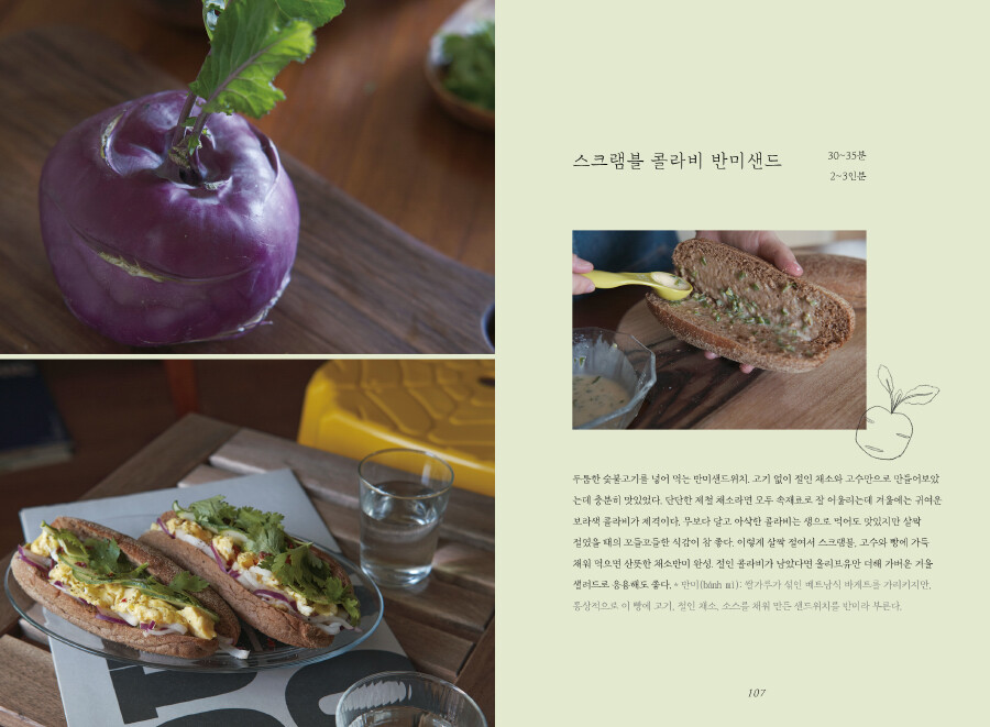 <채소다방>은 채소로 만든 차, 음료, 디저트, 브런치 등을 소개하는 요리책입니다.