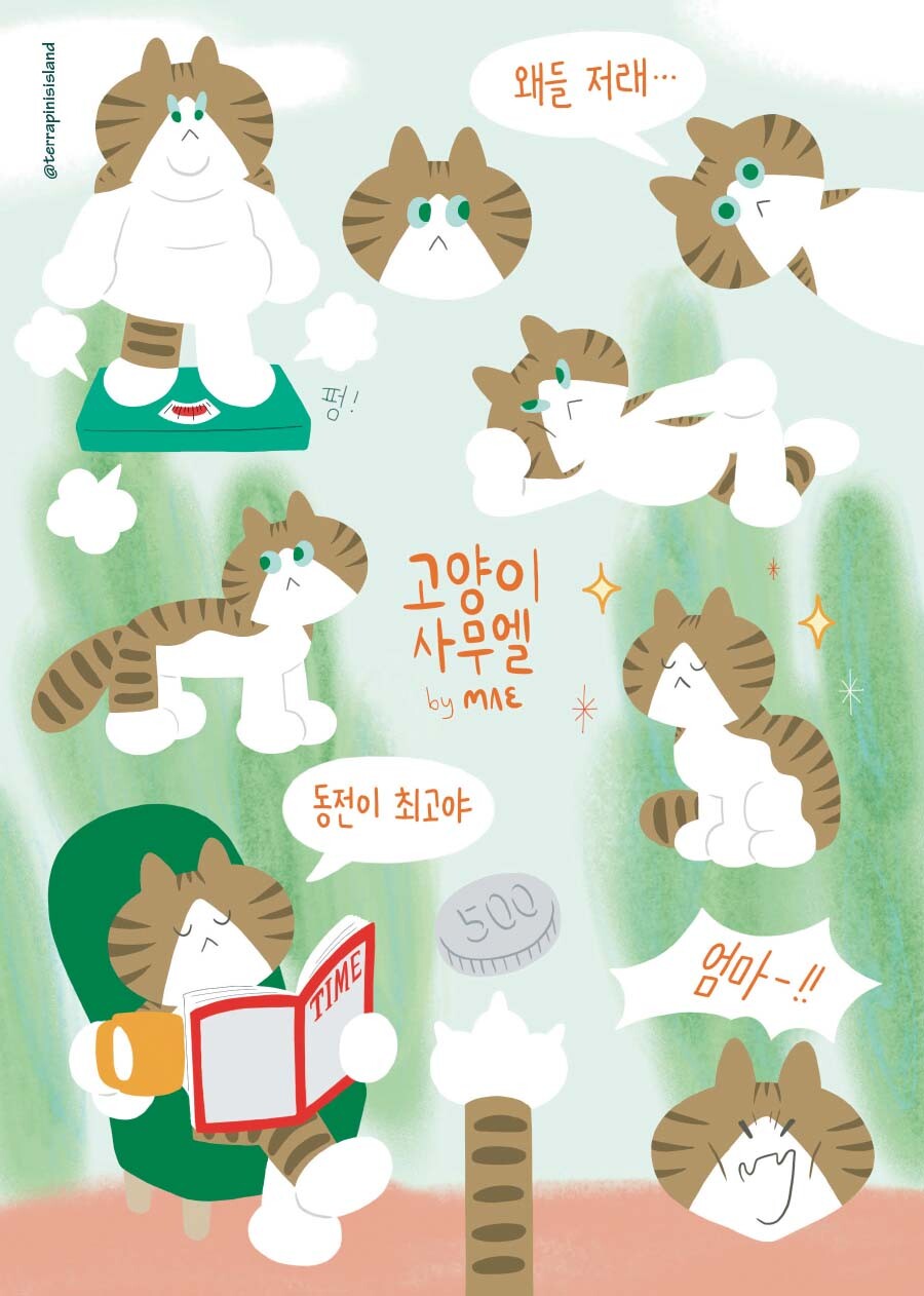 눈보라가 치던 날이었다. 그렇게 고양이 사무엘은 이과동의 한 교회 뒤뜰 화단에서 다른 형제들과 함께 태어난다. 사무엘이 좋아하는 건 햇볕 쬐기. 배가 고픈 건 싫지만 그다지 밥 굶는 타입은 아니다. 한 끼 해결하는 것 정도는 문제도 아닌 고양이. 사무엘은 과연 어떤 묘생을 살게 될까? 사무엘 이야기가 궁금하다면 그래픽노블 매거진 한타스의 정규 5호 <이상한 과도기의 동물들>을 확인해보길!