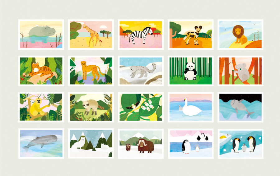 더운나라 동물부터 추운나라 동물까지 우리에게 익숙한 20종의 위기의 동물들을 일러스트로 담았습니다.
