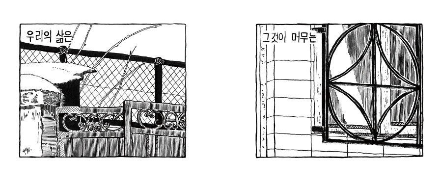 집과 집 사이를 헤매고 다니며 마주친 공간과 사람에 대해 쌓여가는 생각과 의문을 그려서 엮었습니다.