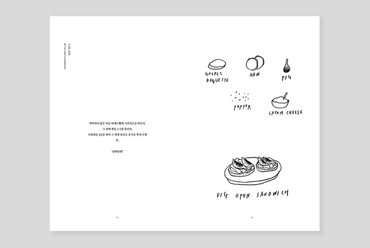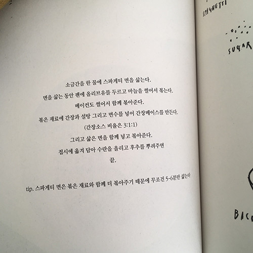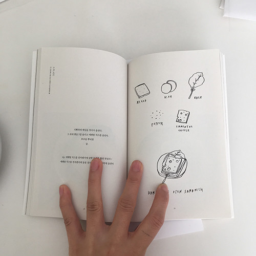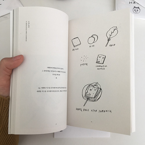 그것의 간단한 레시피를 적고, 끄적끄적 재료와 완성된 음식을 그립니다. 총 28가지의 음식이 담겨 있습니다.