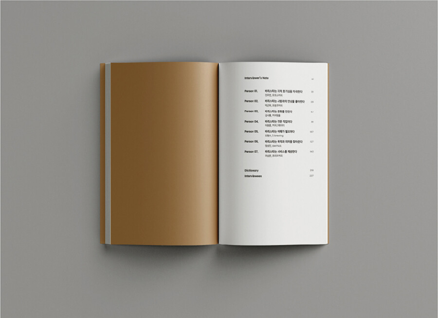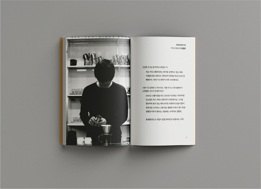 “어떤 사람이 바리스타를 오래 잘할 수 있느냐에 대한 답변은 할 수 있을 것 같아요. 두 가지 조건이 있어요. 우선 사람과의 만남을 좋아해야 됩니다. 만남을 좋아 하지 않으면 굉장히 어려운 상황에 봉착해요. 두 번째로 본인이 매일 보는 광경이 같아도 나름의 보람을 찾을 수 있는 사람이어야 됩니다.” – 72pg