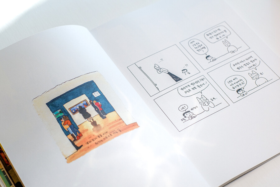 만화와 일러스트, 픽션과 에세이를 오락가락하는 이 책은 결국, 그 견고한 네모를 깨고 나오는 과정에 대한 이야기입니다.