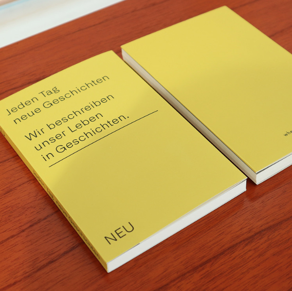 표지에 ‘매일매일 새로운 이야기들, 우리는 우리의 삶을 이야기로 묘사합니다.’ 라는 텍스트가 쓰여 있으며,