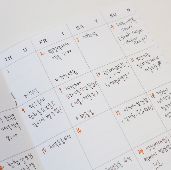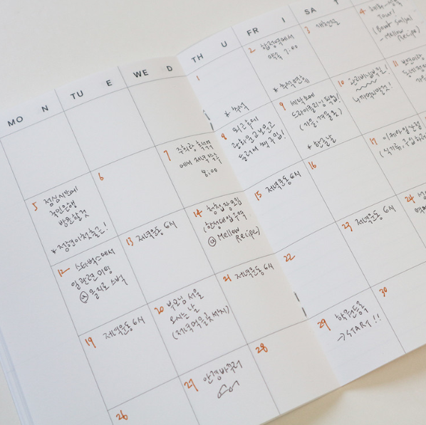 특히 이 제품은 한 권의 다이어리를 꾸준히 사용하기에 다소 부담감이 있거나 월간 기록을 선호하시는 분들께 추천해 드리며, 가벼운 기록을 통해 매일, 매주, 일과를 차근차근 쌓아 나가게 해줍니다.
