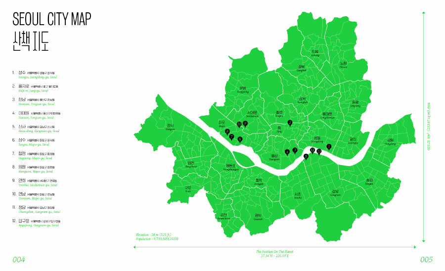 서울 안에서도 핫한 12곳을 선정! 책 한 권으로 한국의 디자인을 읽어보세요.