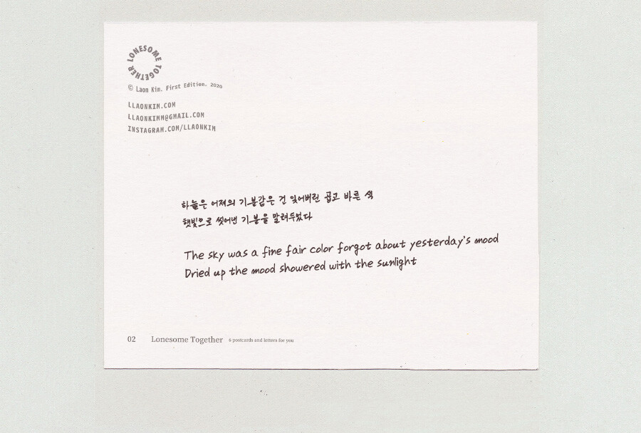 《Lonesome Together》는 여섯 장의 글과 그림을 함께 담은 엽서 세트입니다.