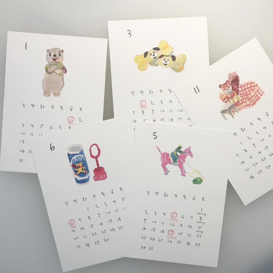 사박 작가는 장난감 친구들을 달력의 주인공으로 그렸습니다.
