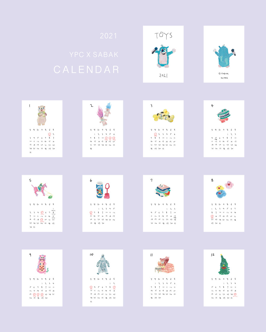 «YPC x 사박 달력 : 2021 작고 이상한 친구들»은 회화 작가 사박의 작품으로 제작한 2021년 달력입니다.