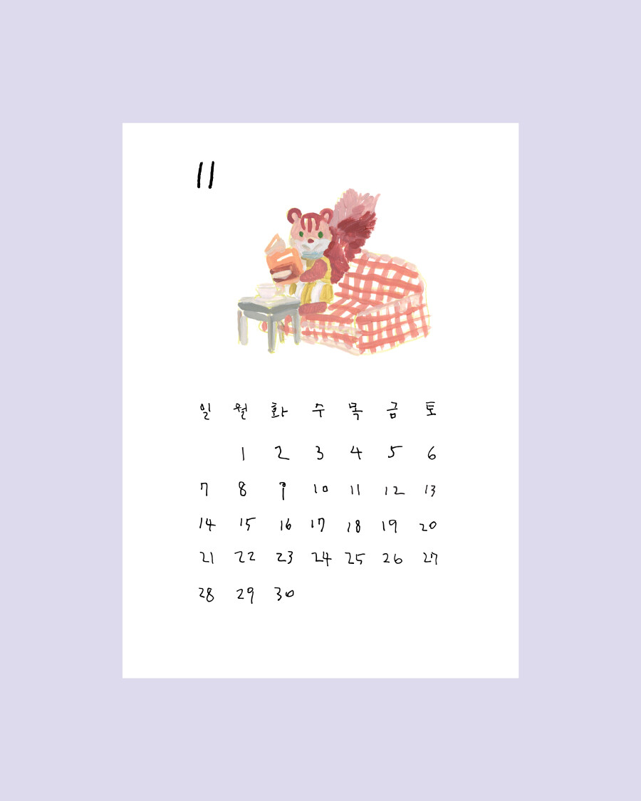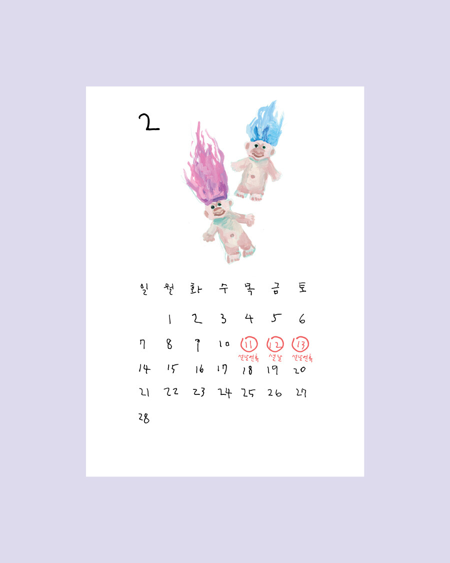 엽서 형태로 제작된 달력은 독특한 앞뒤 표지와 함께 14장으로 구성됩니다.