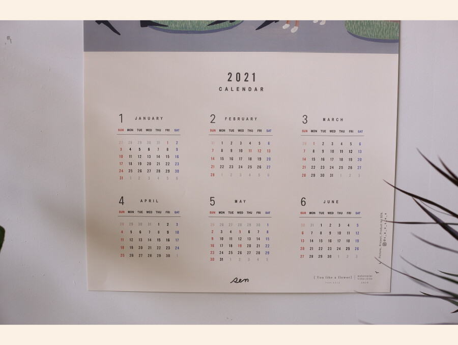 일러스트레이터 sen의 그림의 그려진 2021 달력입니다.