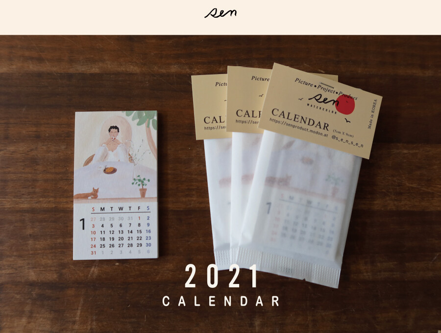 일러스트레이터 sen의 그림의 그려진 2021 달력입니다.