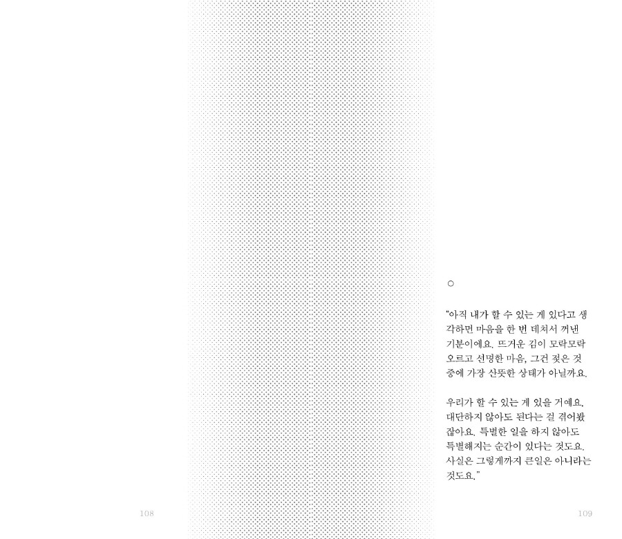 말을 듣거나 하고 나면 나아지는 마음, 그 작은 마음 하나 때문에 우리가 계속 이야기와 장면을 나누게 되는 거 아닐까.
