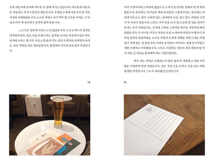 여행지에서도 글쓰기는 계속되겠지만, 일을 하고 싶지는 않았습니다. 그래서 저자는 엽서를 썼습니다.