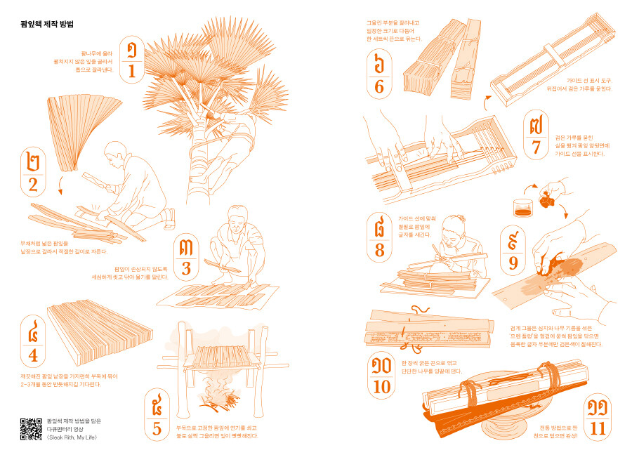 한국인들에게는 생소한 크메르 문자를 눈으로 보고 느낄 수 있는 사진과 그래픽, 큰 글자로 이루어진 부 록 등 시각 자료들이 책에 가득 담겨 있다. 이 시각 자료는 현직 그래픽 디자이너인 저자가 『크메르 문자 기행』만을 위해 만들어낸 유일무이한 자료다. 매일 유심히 글자를 보고 전문적으로 다루는 전문가의 시각으로 해석된 크메르 문자를 만날 수 있다. 동남아시아에서는 전통적으로 팜나무 잎을 재료로 책을 만들었다. 『크메르 문자 기행』에는 팜나무 잎에 송곳 같은 날카로운 도구로 글자를 새겼기 때문에 잎이 갈라지지 않도록 글자 형태가 둥글게 진화했다는 정보가 일러스트로 그려져 있어 쉽게 이해할 수 있다. 이처럼 디자이너가 아니면 주목하지 않았을 놀라운 사실을 사실적인 그림과 자료로 만날 수 있다.