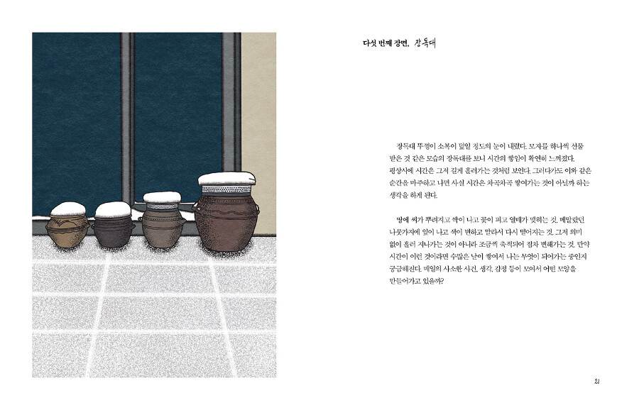 1년 동안 괴산에 살면서 만난 40가지 장면과 그 장면을 보고 떠오른 생각을 글과 그림으로 담았다.