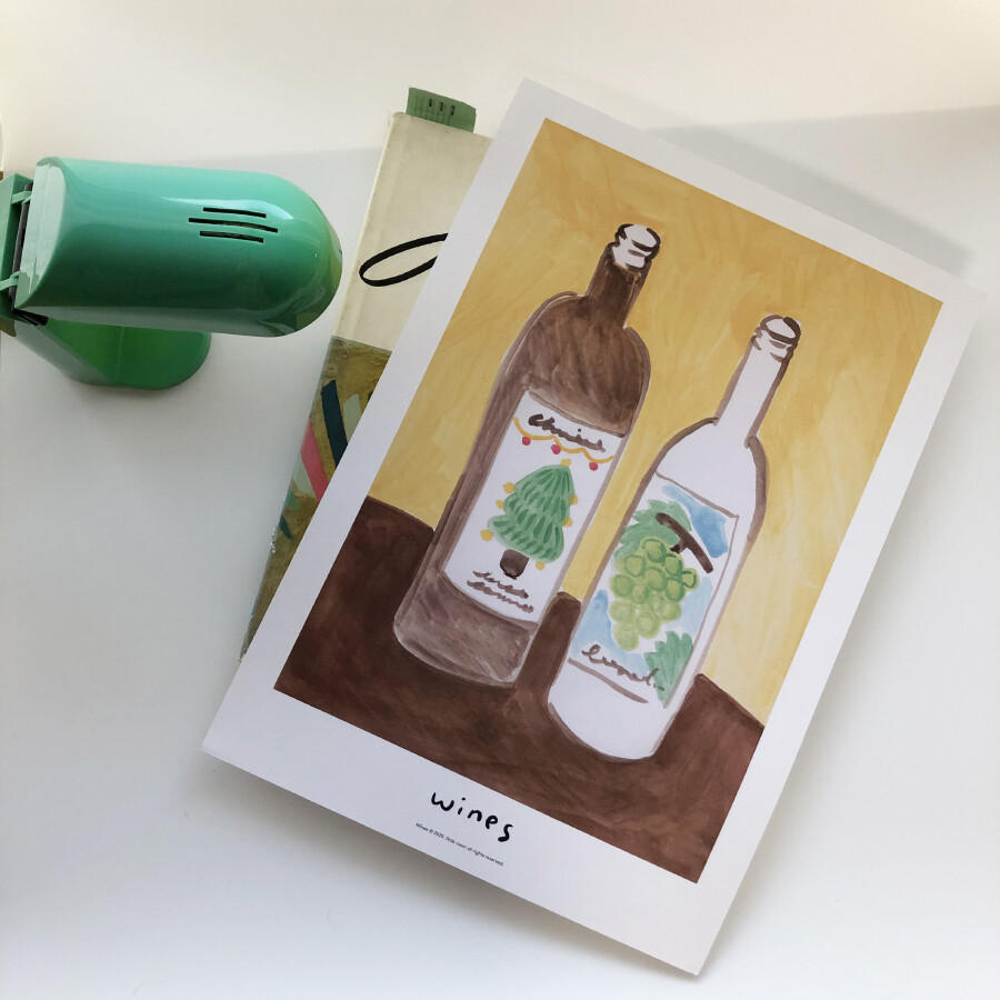 친환경 재생지 시로에코 250g 에 인쇄한 와인이 놓인 정물 그림 'Wines'입니다.
