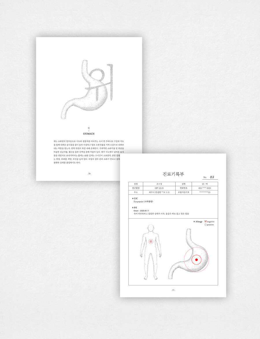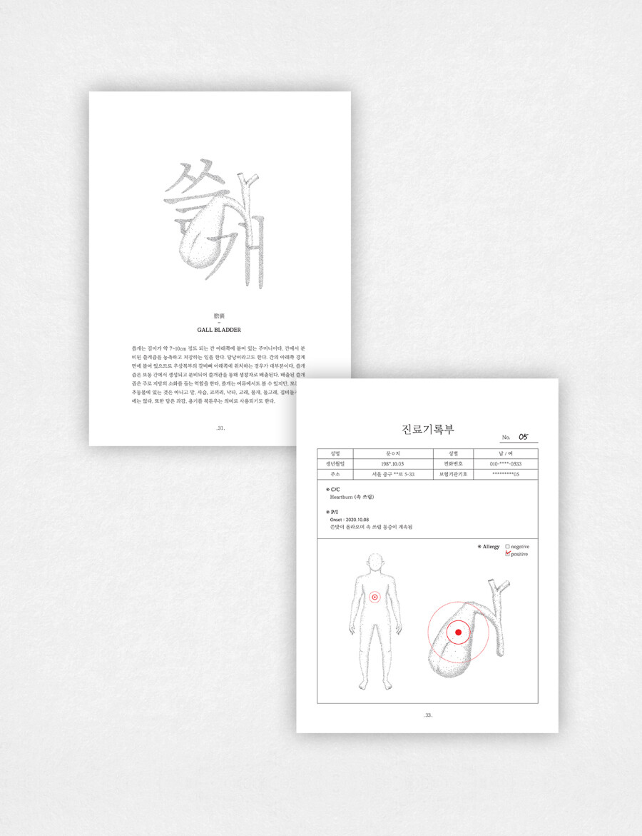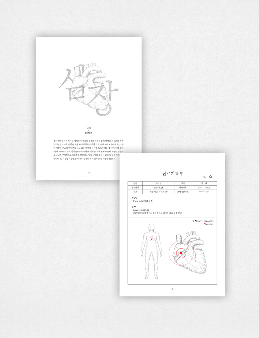 장기의 설명을 시작으로 진료기록부를 거쳐 하나의 시로 완성됩니다.