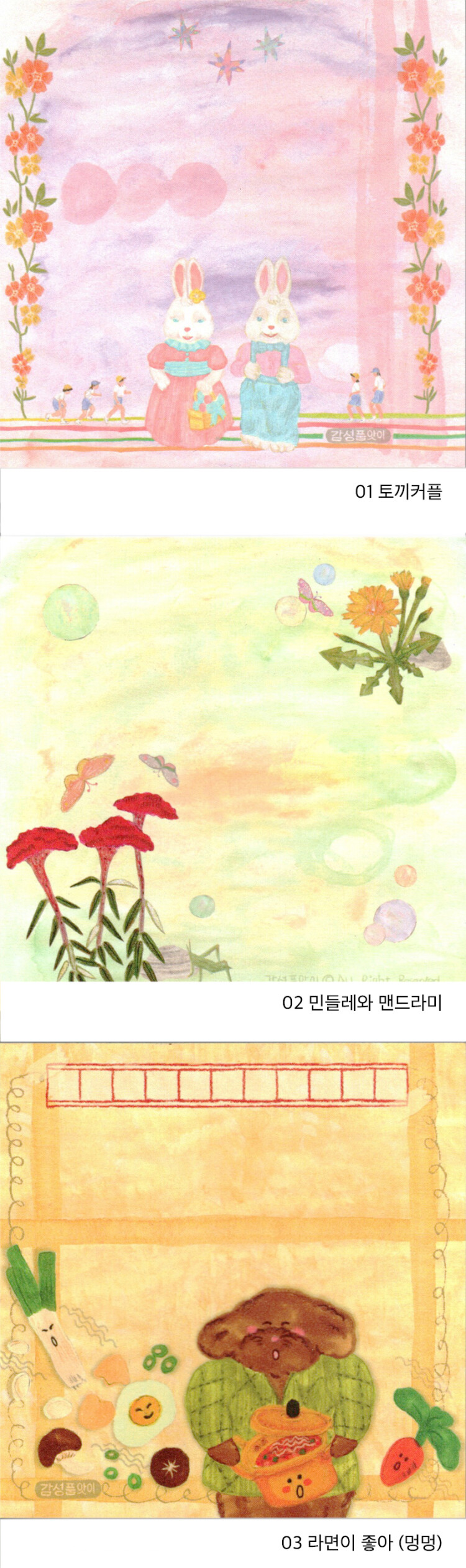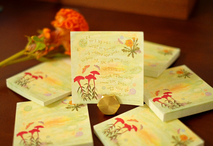 감성품앗이의 일러스트로 그려진 떡메모지 입니다.