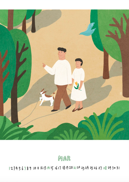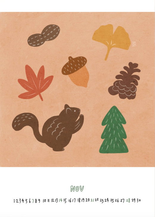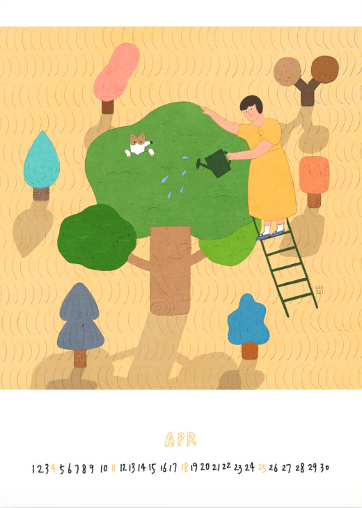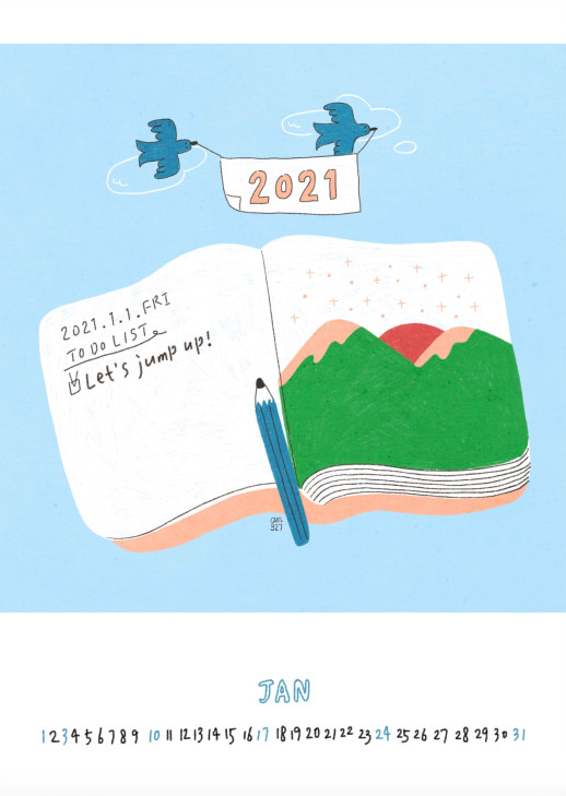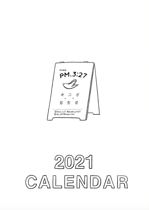 일러스트레이터 AM327의 그림이 담긴 2021년 일러스트 벽걸이 달력입니다.
