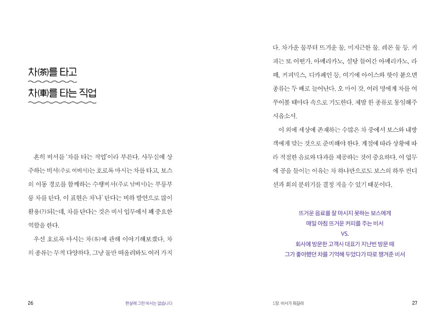 비서에 대한 책은 시중에 몇 권 존재하지만 에세이는 이 책이 처음인 것 같습니다.