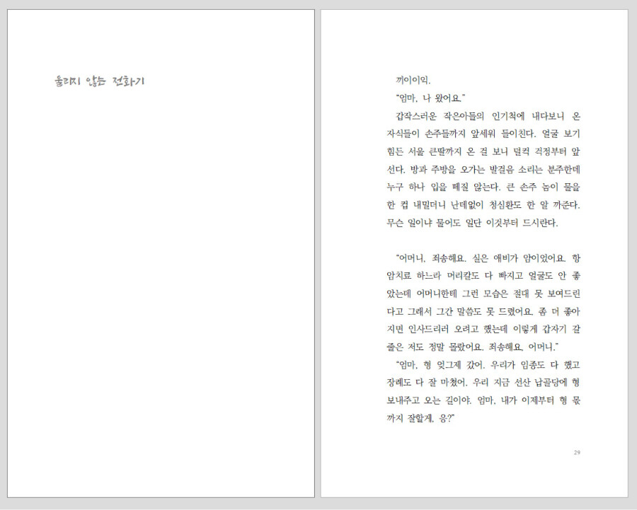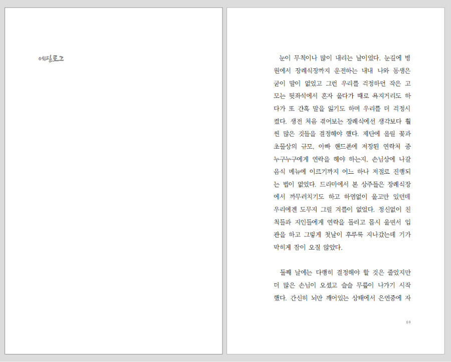 여덟 명의 입장에서 이 글을 써 내려가며나는 여덟 번의 장례식을 치르는 기분이 들었고 그것은 사실 내게 조금 버겁기도 했다.하지만, 준비 없는 이별을 겪었을 그 어느 누군가,단 한 사람에게 손톱만큼이나마공감과 위로가 되어줄 수 있지 않을까 하는 작은 바람으로 중간에 도망치지 않고꿋꿋이 마무리 지을 수 있었다.- 에필로그 중에서