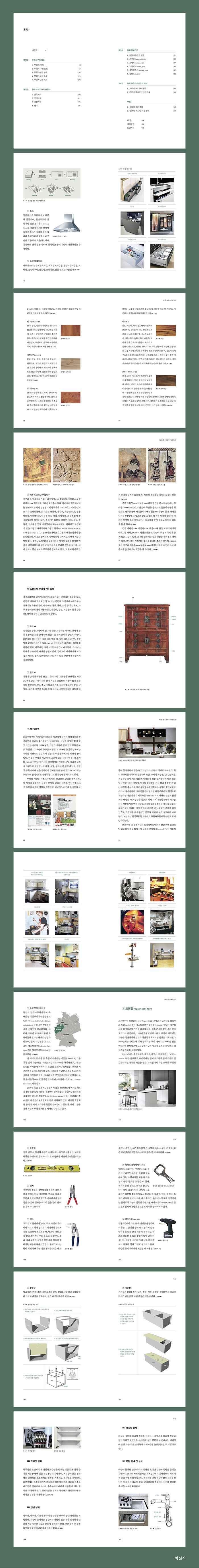 특히 부록에서 싱크대의 구조와 시공 과정을 각종 도판 자료과 함께 자세히 안내하여, DIY 가구에 관심이 많은 소비자는 물론 부엌가구회사의 신입 사원, 시공기사 등이 유용한 사용할 수 있게 했다. 부엌가구를 단독 주제로 삼아서 꼭 필요한 정보를 명료하게 정리하고 알차게 담아낸 단행본으로, 관련 종사자와 연구자에게 좋은 가이드북이 되어줄 것이다.