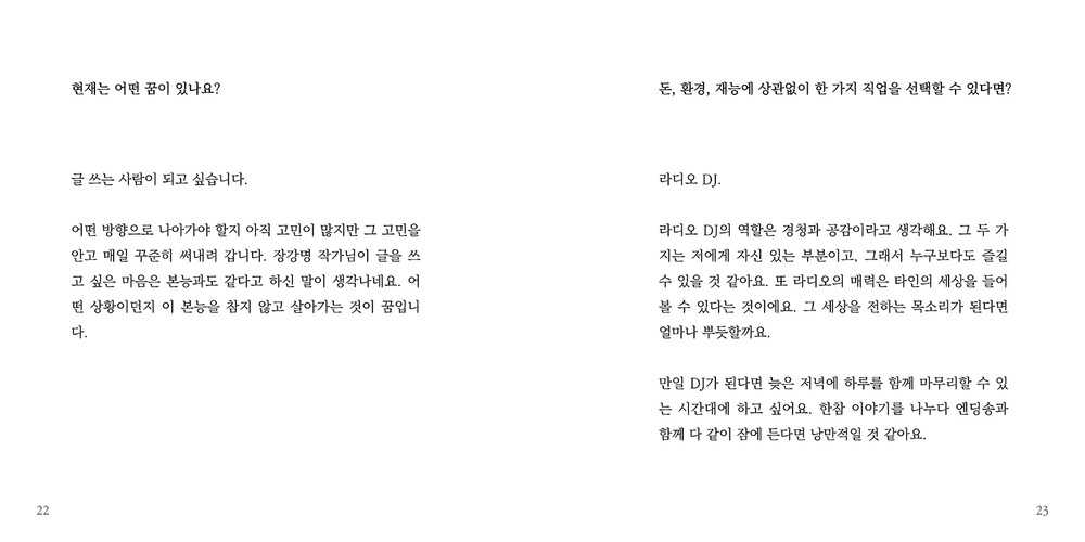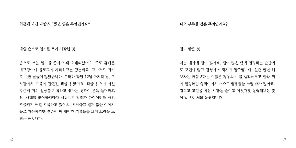 당장 내일이라도 대답은 바뀔 수 있지만, 현재의 우리는 어떤 대답을 할 수 있을지 계속해서 질문하고 싶었고, 그 호기심을 기록했습니다. 그 기록된 책이 바로 나를 인터뷰하는 <나터뷰> 입니다.