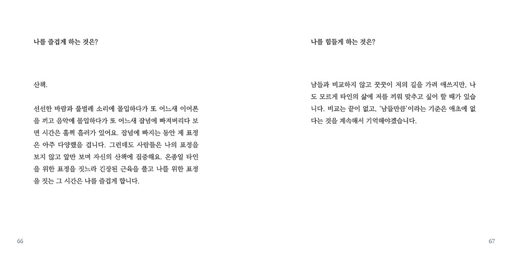 이 책을 통해 저는 어떤 사람인지, 그리고 본인은 그 질문에 어떻게 대답할지 잠시 생각하는 시간을 가졌으면 하는 바람을 담았습니다. 가볍고 편안한 마음으로 읽어주시면 감사하겠습니다.