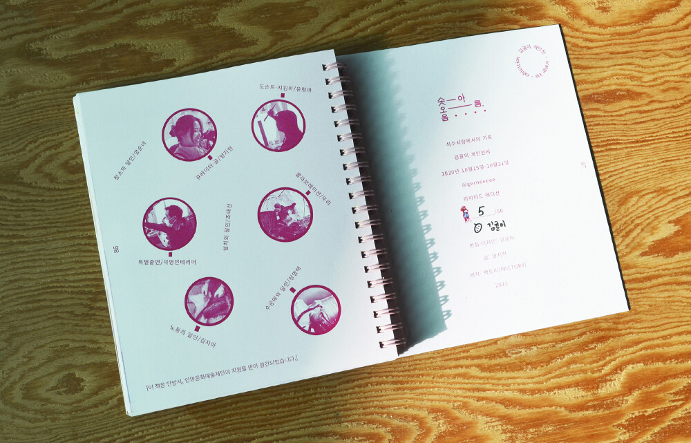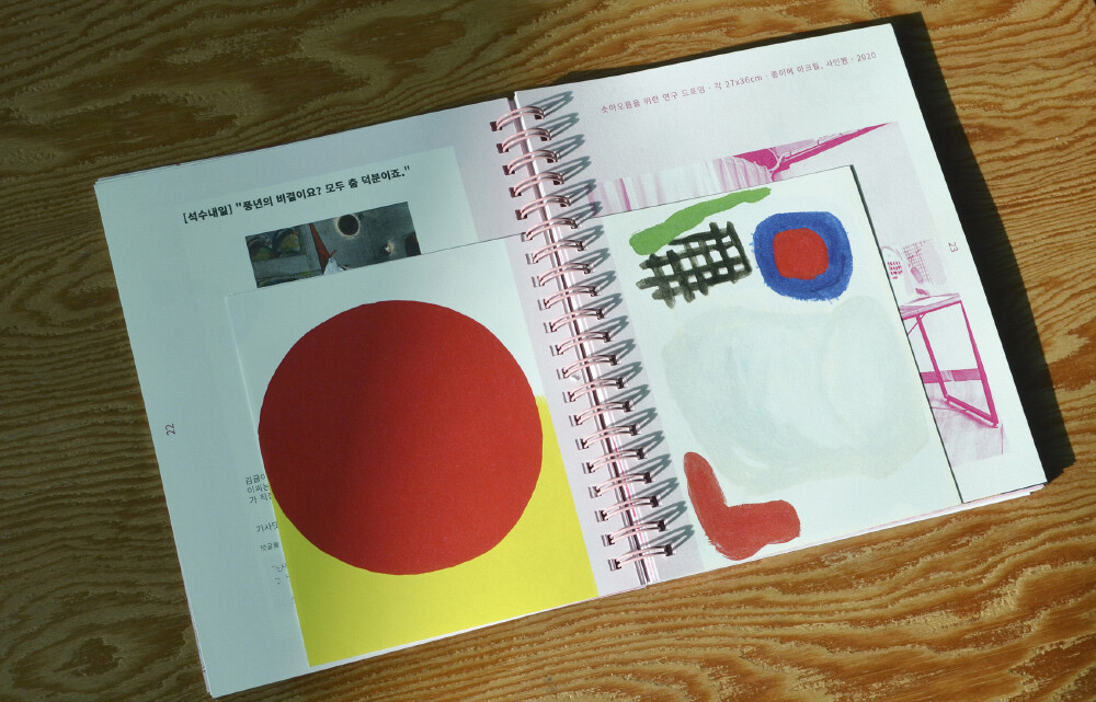 2020년 10월 김귤이 개인전 <솟아오름, 음...>의 내용을 담은 책입니다. 작가의 작업물은 책의 형식에 맞게 변주되어 책의 곳곳에 재밌는 요소들로 담겼습니다. 작업물에 대한 소개뿐만 아니라 그간의 과정, 그리고 동료들과 함께한 인터뷰까지 기존의 아트 도록과는 차별점을 두었습니다.