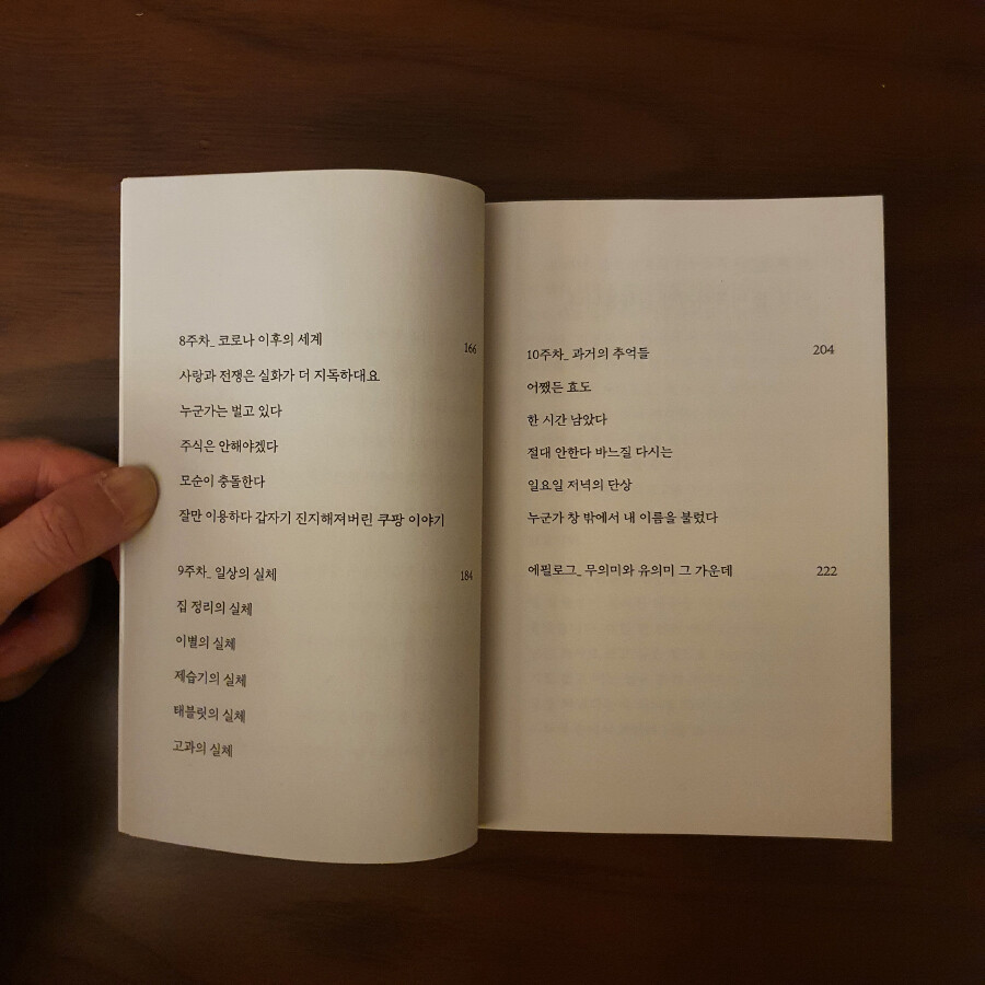 누구나 다짐을 하고 때로는 넘어지곤 하는데요. 저는 유난히 결심을 잘 어기는 사람인지라 '매일 10주 적기'라는 목표는 꼭 달성하고 싶더라구요. 그래서 '자고 일어나면 후회할 글이라도 꾸준하게 기록하고싶다'는 마음으로 어떤날은 기막힌 문장을 일필휘지로 적었고 어떤날은 간신히 몇 문장을 짜내며 셀프고문 같은 10주를 보냈습니다.