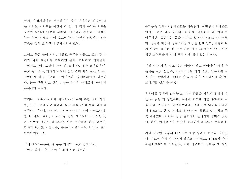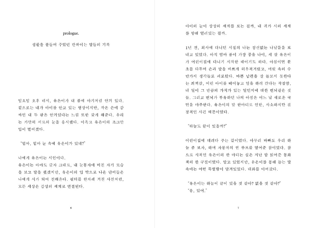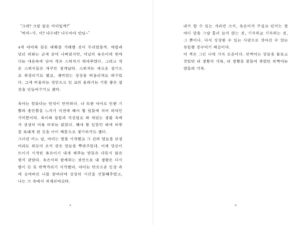 어느 날, 아이는 말을 시작했고 그 간의 일들을 보상이라도 하듯이 보석 같은 말들을 뿌려주었습니다.