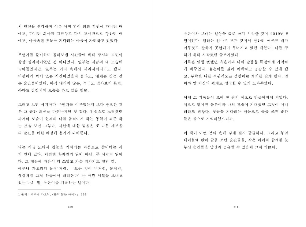할 수 있는 거라면 그저, 유은이의 한 마디 한 마디를 흘려 듣지 않는 것, 기록하고 기록하는 것, 그 뿐이었습니다.