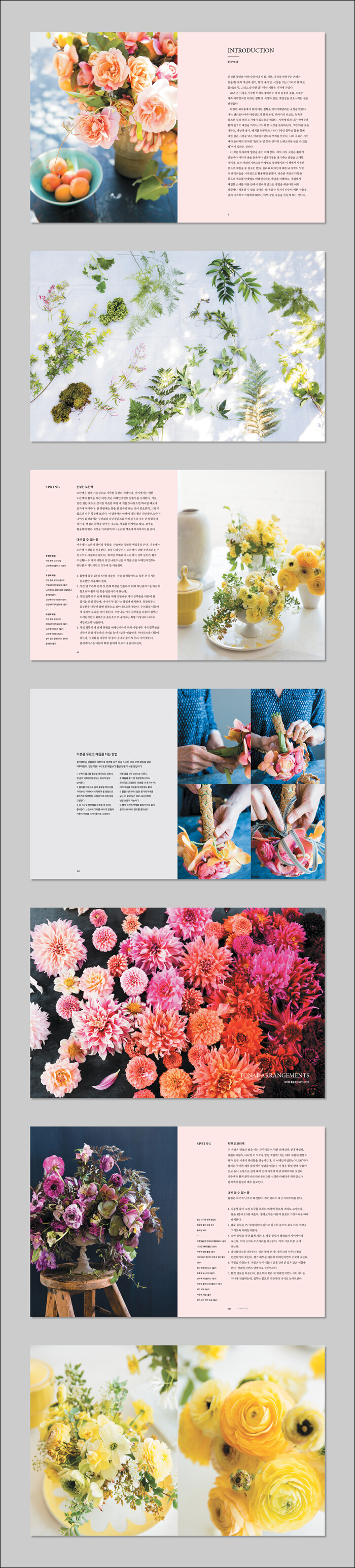 이 책에는 소재에 대한 이해, 꽃을 다루는 법, 계절과 상황에 맞는 디자인, 작품 구상 단계 등이 감각적으로 정리되어 있다. 또한 색조, 꽃의 종류, 계절, 형태에 따른 다양한 플라워 디자인이 체계적으로 설명되어 플로리스트뿐만 아니라 꽃을 처음 접하는 독자들도 이해하기 쉽다.
