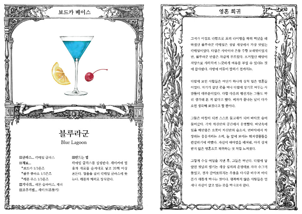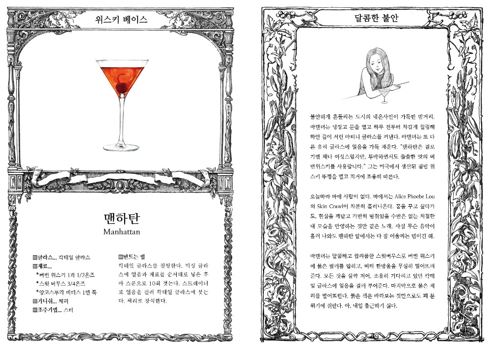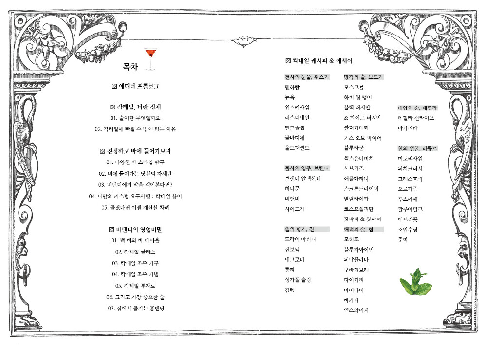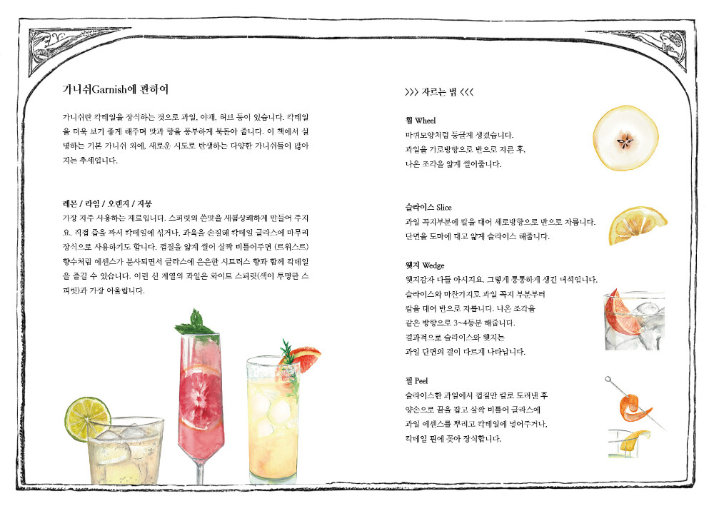 괜히 도전했다 실패할까봐, 언제나 항상 시키던 것으로 주문하던 모습 또한 있겠지요. 위스키, 브랜디, 럼, 진, 데낄라 등 다양한 양주가 섞여있다곤 하는데, 모르는 것 투성이었던 적 분명 있으실 거에요. 칵테일 한 잔은, 당신의 불안을 잠재우고 정신없는 마음을 기분좋게 이완시켜 주기에 안성맞춤이지요. 달콤한 과일이 앙증맞게 장식된 트로피칼 빛깔의 영롱한 칵테일 한 잔으로 당신을 위로하기도 하고, 초록 올리브가 무심코 다이빙한 투명한 마티니에 진득히 취해 공허를 즐기고 싶은 그런 모순적인 날도 있기 마련입니다. 아득해져버린 산호섬으로의 여행을 에메랄드빛 블루라군 칵테일로 달래볼 수도 있답니다. 술을 못하시는 분들껜 무알콜 칵테일 또한 권하지요. 문득 낭만을 즐기고 싶을 때, 다양한 칵테일 이야기를 담은 칵테일도감 THE MOON과 함께해 보세요. 양주와 칵테일, 바, 바텐더, 칵테일 레시피 등 다양한 칵테일 상식과 에세이를 담아보았습니다.