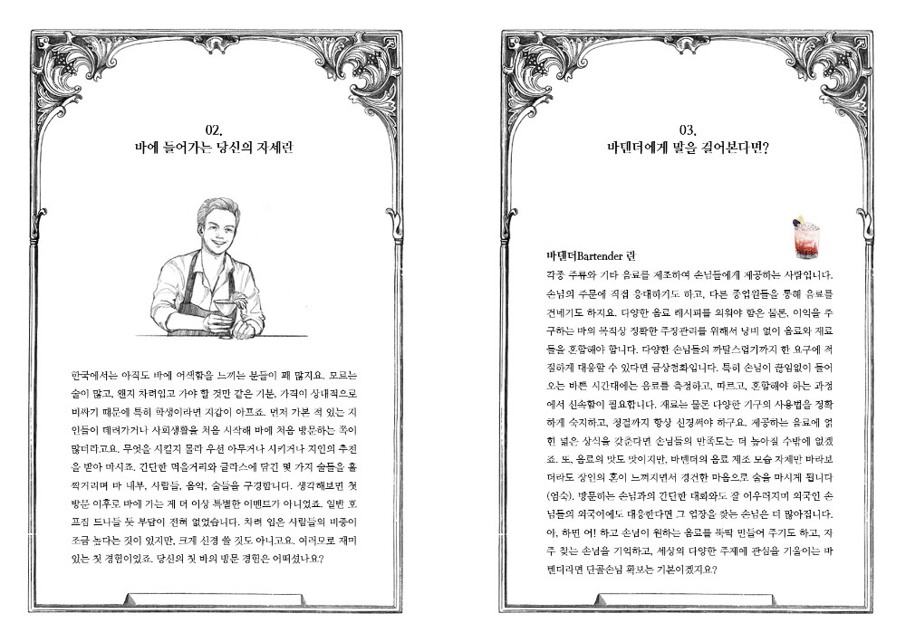 어떤 칵테일을 주문해야 할 지 몰라 무작정 아무거나 시켜본 적, 한번 쯤 경험해보지 않으셨나요. 예쁜 이름이다 싶어 기대하고 주문했는데, 투박한 글라스에 단순하기 짝이 없는 칵테일을 받고 실망한 경험이라던지, 드라이하게 꽤 취하고 싶은 날이었는데, 알록달록 달큰한 저알콜 칵테일이 나와 당황했던 기억이 있진 않으신가요? 혹은 그 반대도. :)