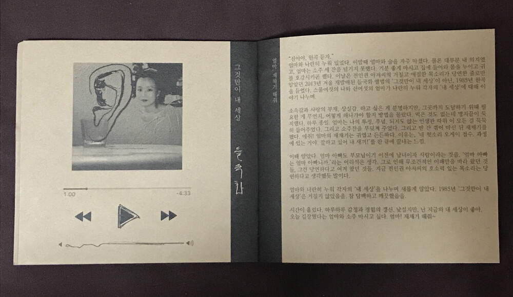 ‘독립출판물’이기에 가능한 인쇄물의 형태로 제 음악의 기억을 표현하고 싶었습니다.