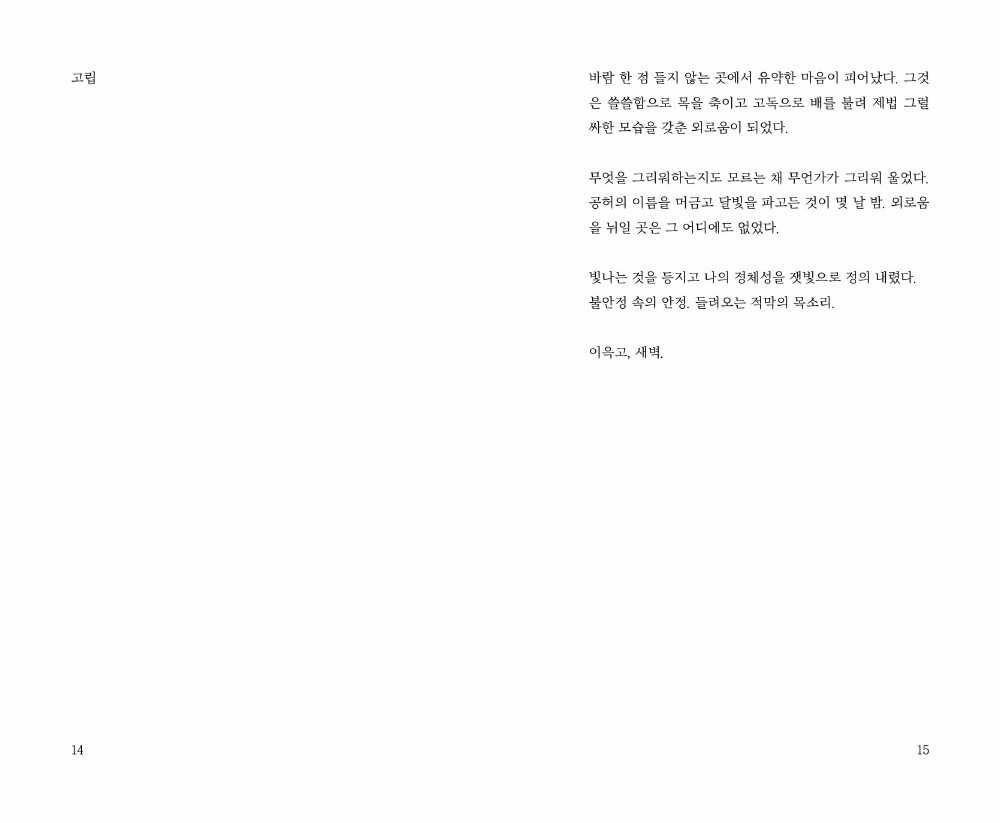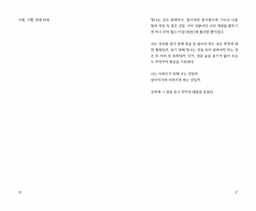 좋아하는 후회로부터 엉겹의 불안을 표류하였던 기억의 부산물들이 담겨있습니다.
