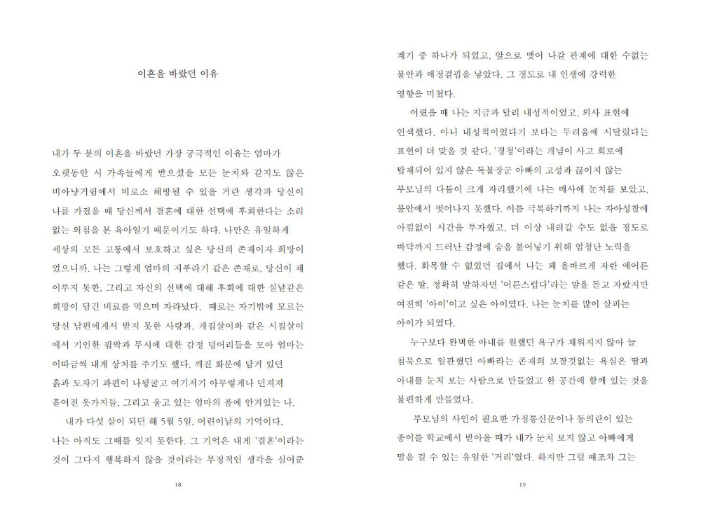 저는 부끄러움이라 쓰고 상처라 읽을 수 있는 어린 시절을 보냈습니다.