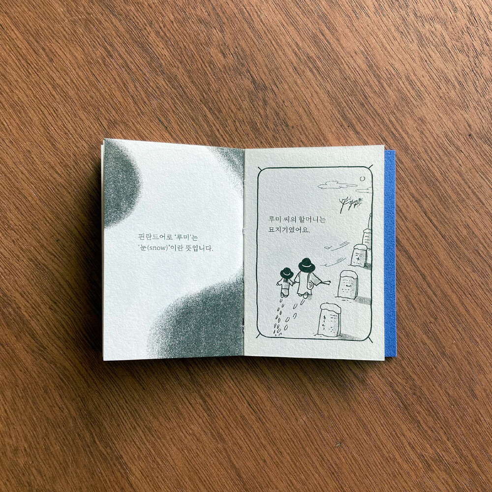 하양지 만화가의 신작 단편 만화 미니북. 핀란드에 실재하는 핵폐기물 시설 ‘온칼로(Onkalo)’를 배경으로, 지금으로부터 100년 뒤 그곳을 관리하는 청소원 루미 씨의 일과 생각을 그렸습니다. 다분히 공상과학적일 수 있는 미래 설정 속에서도, 하양지 작가는 묘지기 할머니와 루미 씨의 연결을 통해 인물의 개인사와 감정에 더 집중합니다. 처음부터 극히 작은 판형의 미니북을 위해 그려진 짧은 분량의 만화이지만, 작가 특유의 표현과 여운을 만날 수 있습니다.