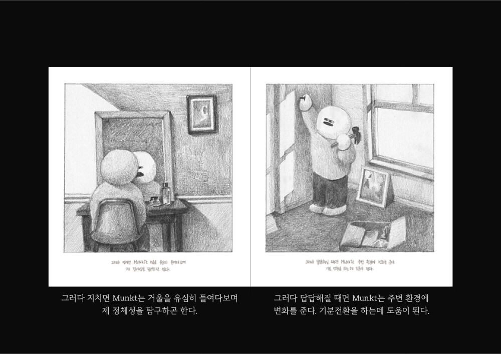 혼자 있고 싶으면서도 친구들과 함께 있고 싶은 이중적인 Munkt의 마음을 그린 책입니다.