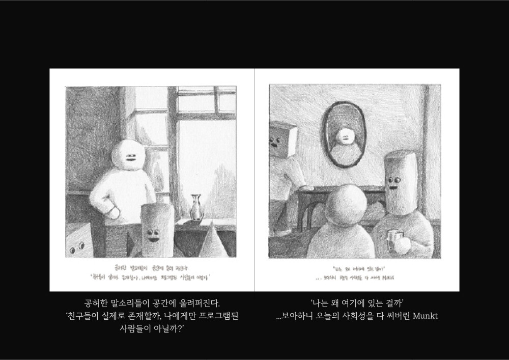 고독을 즐기다가 외로움을 느끼고 친구들과 어울릴때면 다시 고독을 갈구하는 굴레를 담았습니다.