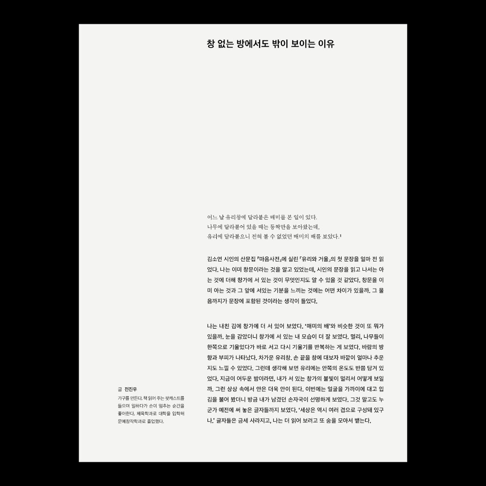 2021년 상반기에 발행한 5호의 주제는 ‘창문’입니다.