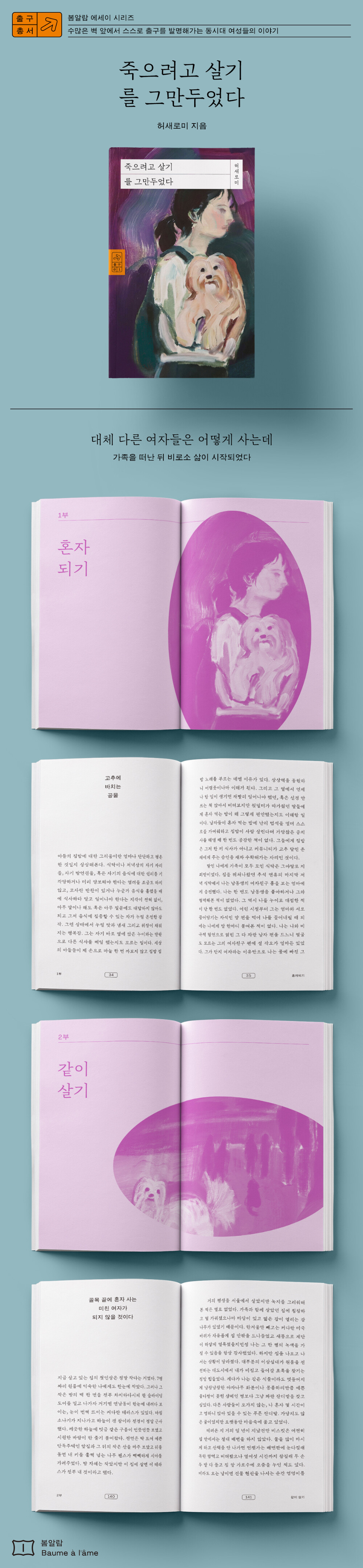 『죽으려고 살기를 그만두었다』는 이 위협에 굴복하지 않은 여자가 자기 삶을 찾아내는 이야기다. 저자 허새로미는 서른다섯에 가족을 떠났다. 가족과 함께한 수십 년의 시간에 켜켜이 쌓인 좌절을 잊지 않았고 감히 용서하지 않겠다 결정했기에 끝내 혼자가 되었다. 그 용기로 그는 비로소 삶을 시작할 수 있었다. 신용카드 한 장 들고 집을 뛰쳐나온 그는 사무실 돌바닥에서 목도리를 베고 첫 밤을 보낸 뒤 혼자의 생활을 꾸려간다. 그렇게 ‘바깥’을 전전하는 동안 새로운 관계를 만난다. 그에게 살아 있는 값을 치르라 요구하지 않는, 불완전한 딸년이라 혀를 차지 않는, 유난하고 별스러운 여자라 손가락질하지 않는 세상을 만난다. 이제 그는 불행한 심정을 ‘내일 죽어도 상관없다’는 말로 방어하기를 그만두고 자신에게 안전한 관계와 더 나은 생활을 향해 선다. 새로운 친구들과 함께 스스로 번영하는 그는 이제 자신이 어디로 가면 살지를 안다.