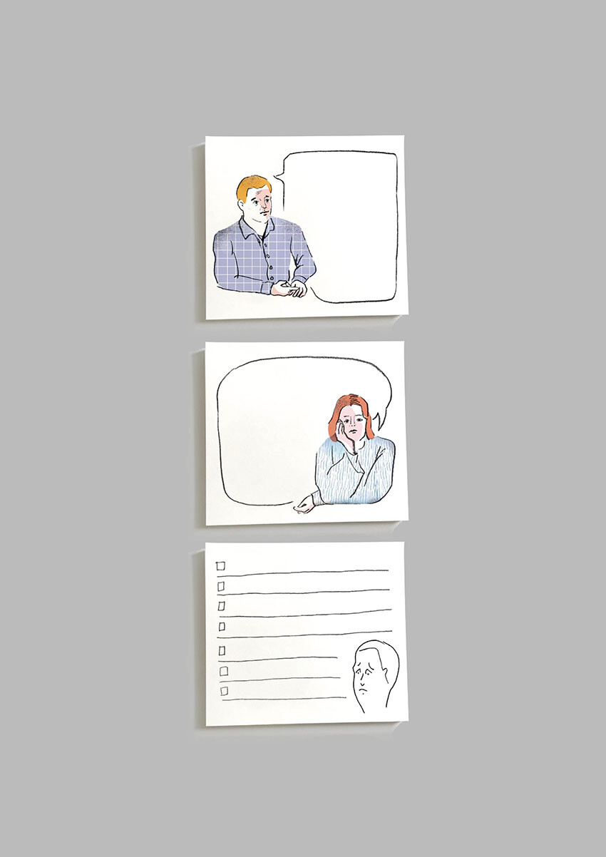 영화의 한 장면을 그린 드로잉에 메모장과 체크리스트를 만들었습니다.