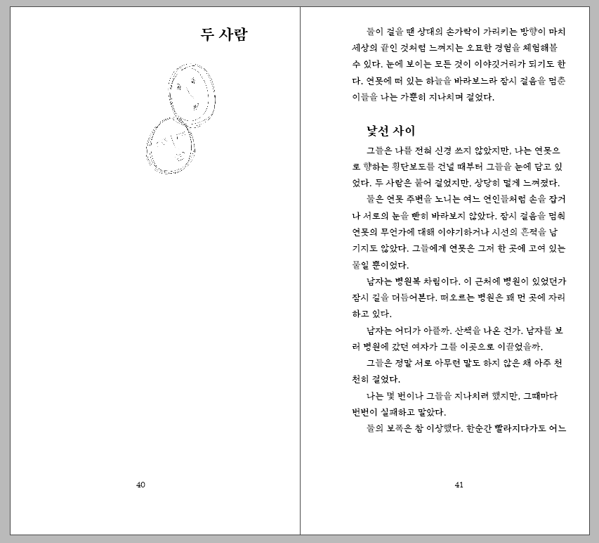 두 사람과 홀로, 챕터에서는 나와 걸음을 맞춰 걷는 누군가에 대해, 혹은 불현듯 떠오른 누군가에 관한 이야기가 담겨 있습니다.