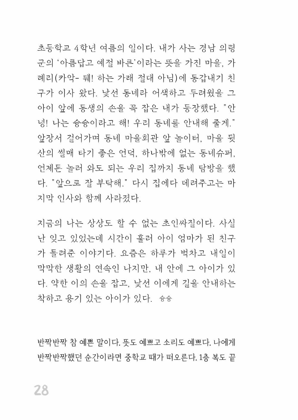조심스럽게 혹은 와락 그리고 꼬옥, 나를 안아주기 위해 글을 씁니다.