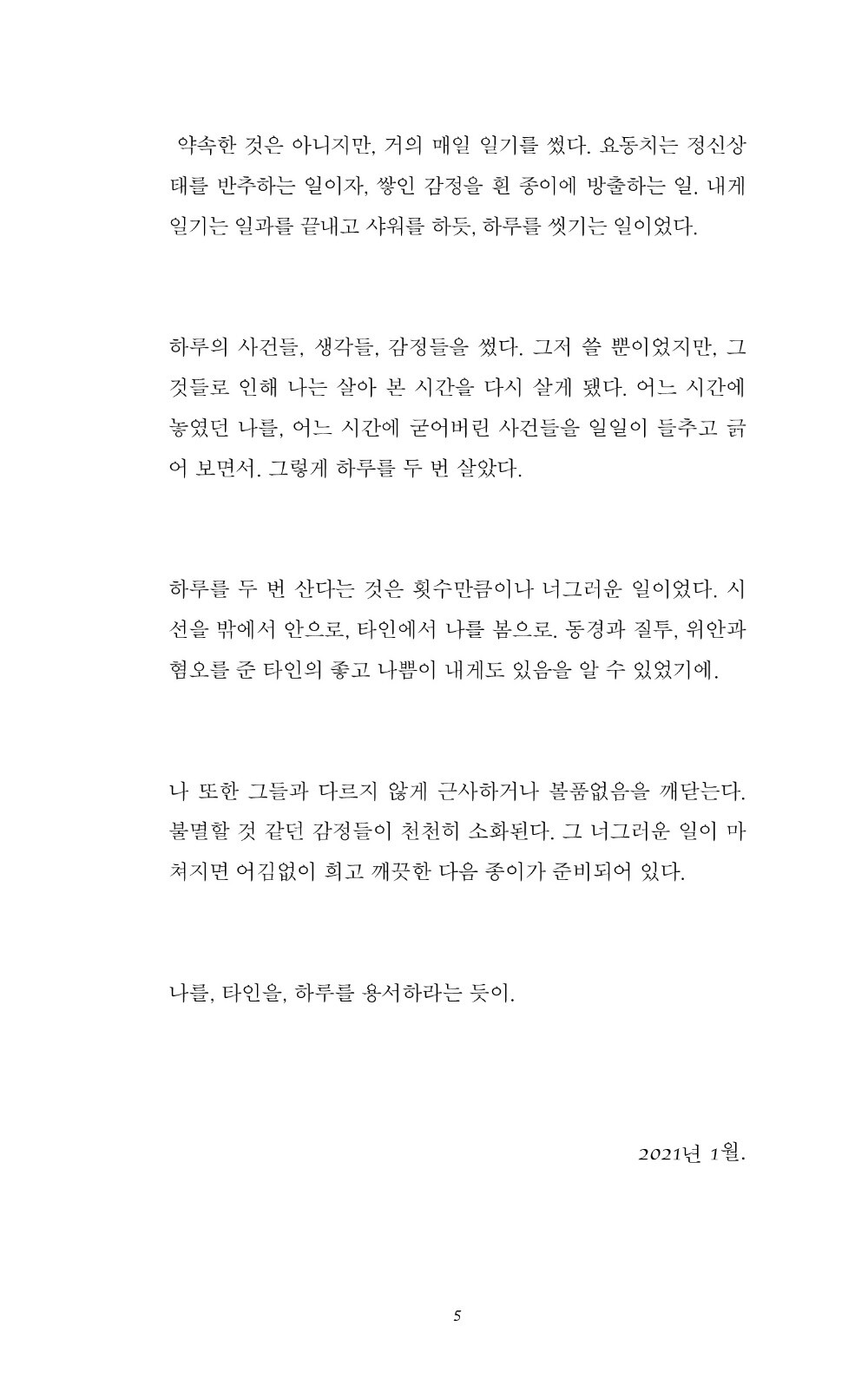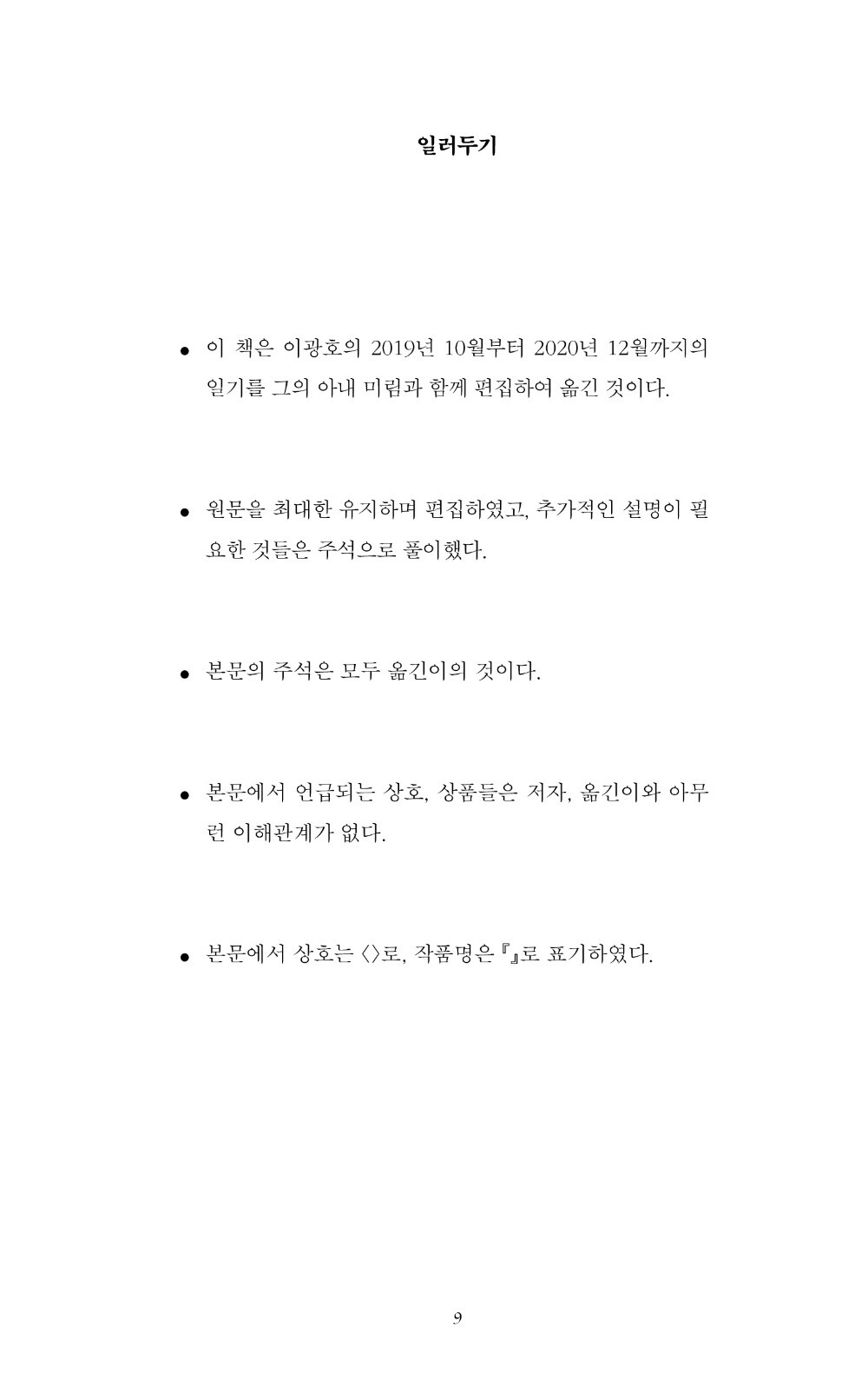 <흰 용서>는 독립적으로 자유롭게 문학 활동을 하는 이광호의 2019년 10월부터 2020년 12월까지의 일기 원문을 최대한 유지하며 편집하여 옮긴 에세이다.