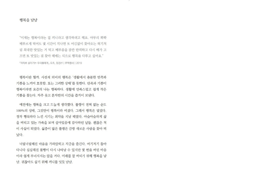 특별한 사람을 만나지 않아도 괜찮은, 그 자체로 만족스러운 일상.